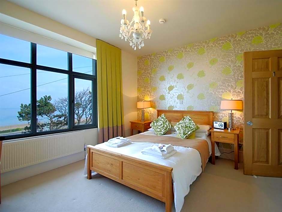 Spacious, front sea view room with four-poster bed. The room features solid Spanish oak furniture and boutique designer style decor. There is Italian floor-to-ceiling tiling in the bathroom with a full sized bath and shower over.